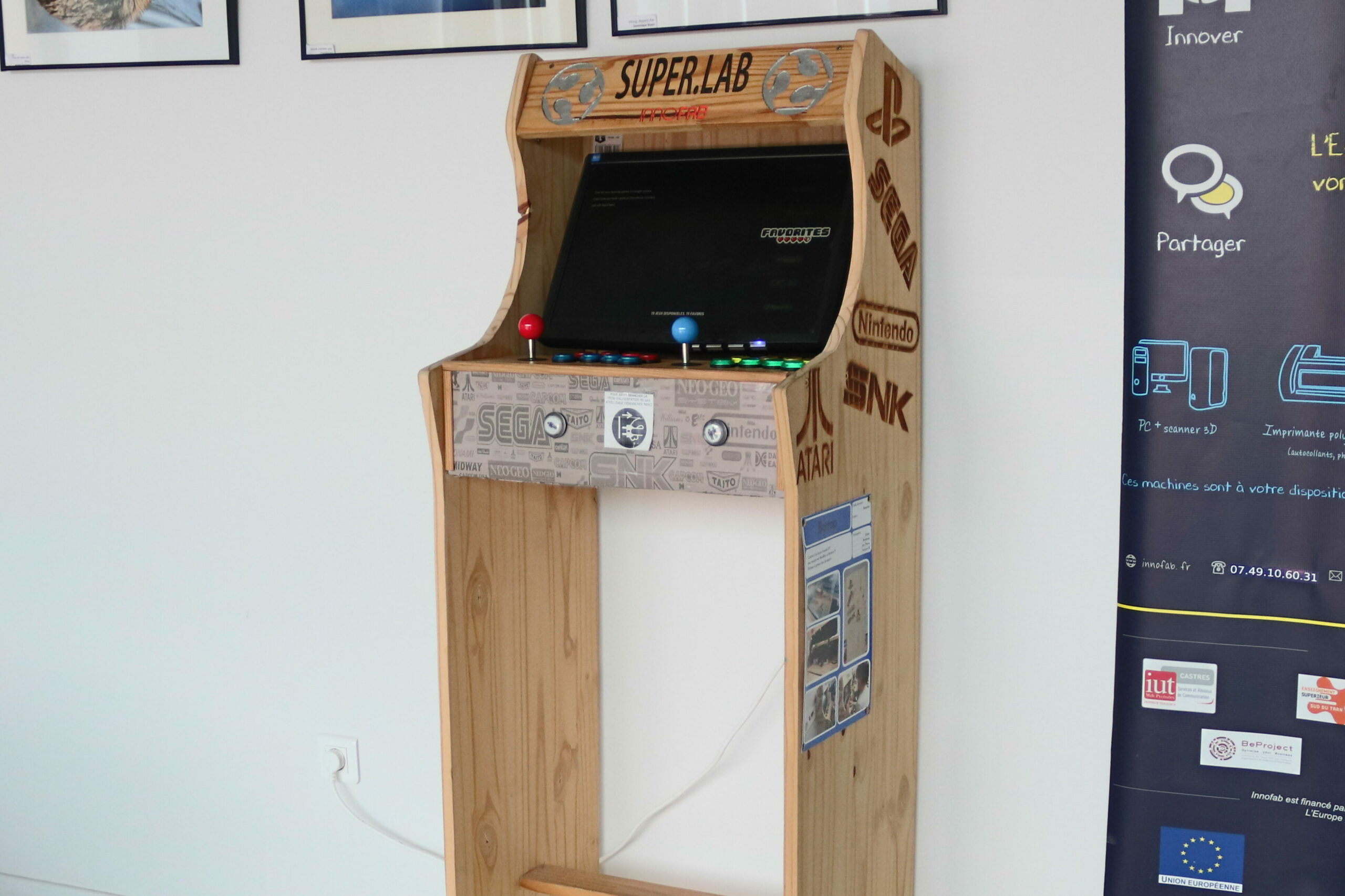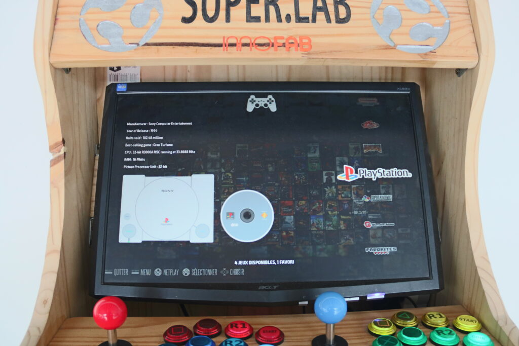 Cette borne d’arcade fonctionnant sur l’émulateur Recalbox 18 émule plusieurs consoles retro allant de la NES à la Nintendo 64 en passant par la SEGA MegaDrive ou encore la Playstation 1.