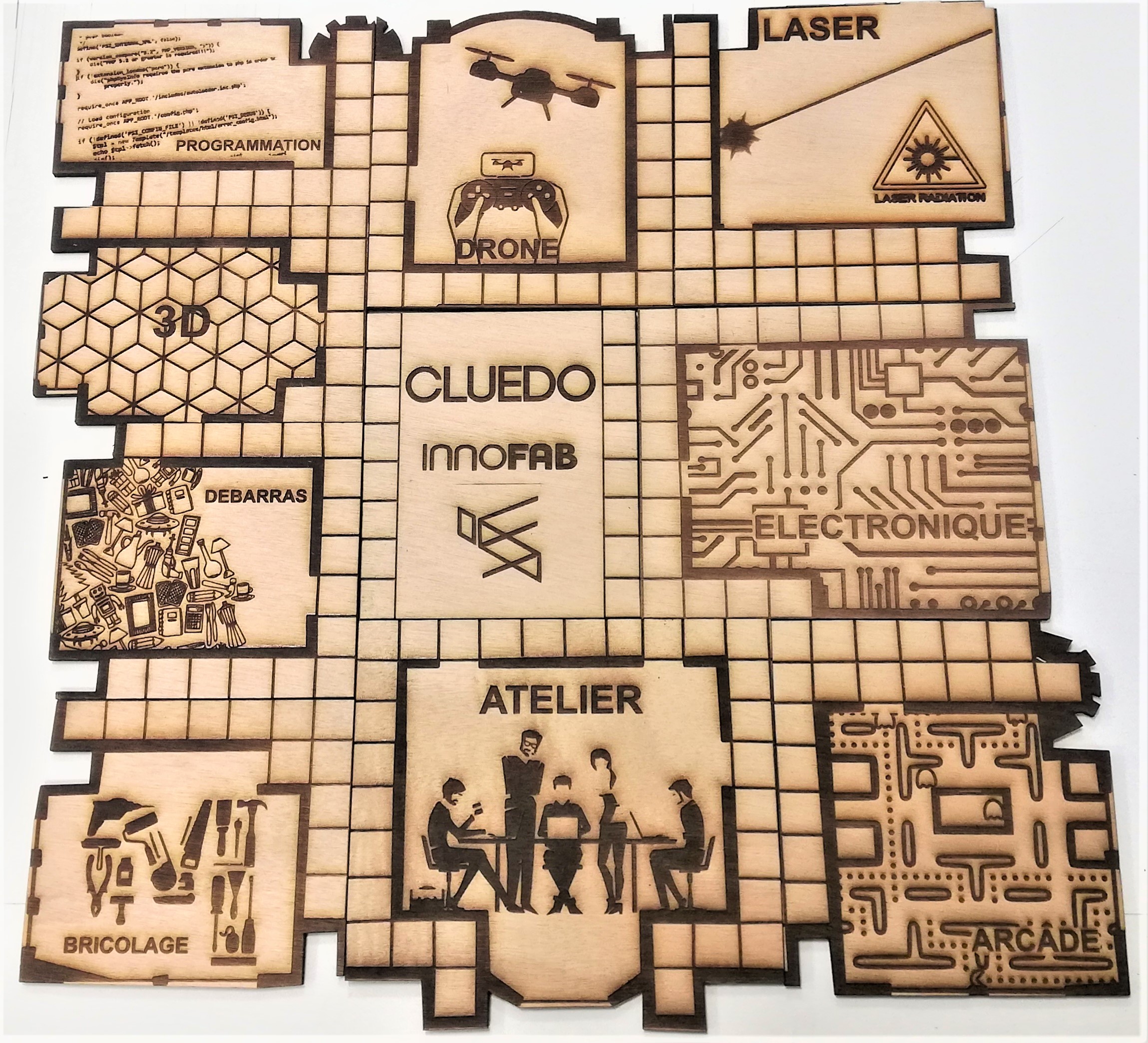 Le but de ce projet est de montrer l’application de nos différentes machines et l’appliquer pour créer un jeu de type Cluedo dans l’univers des FabLab !